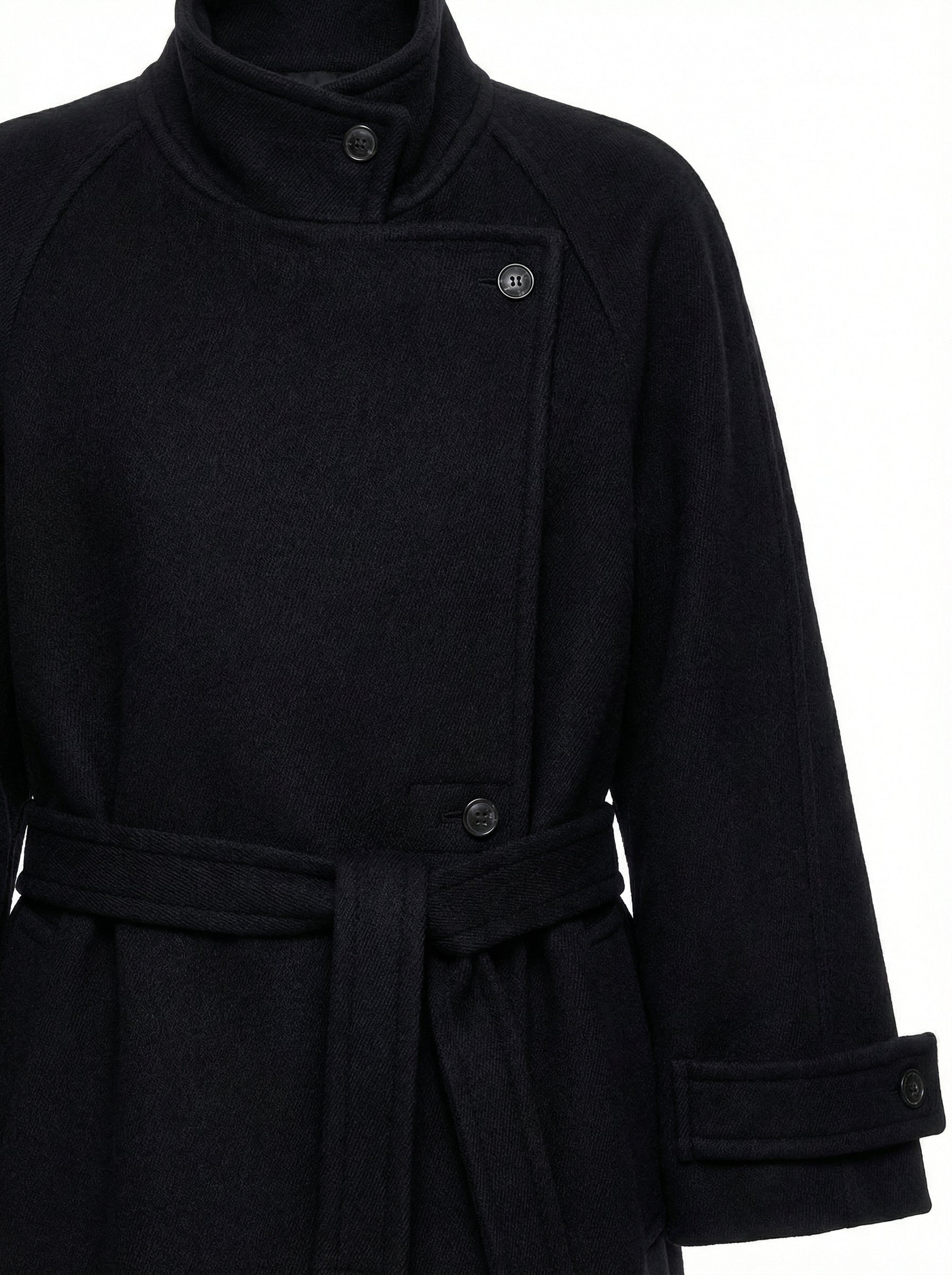 [Low Classic] Soft Wool Twill Wrap Coat (Black)